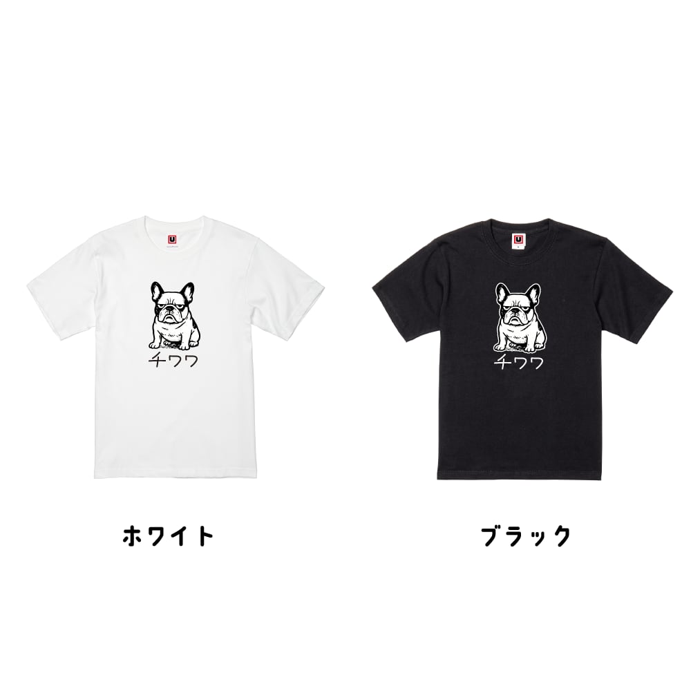 【商品名】フレンチブル×チワワ (モノトーン)Tシャツ