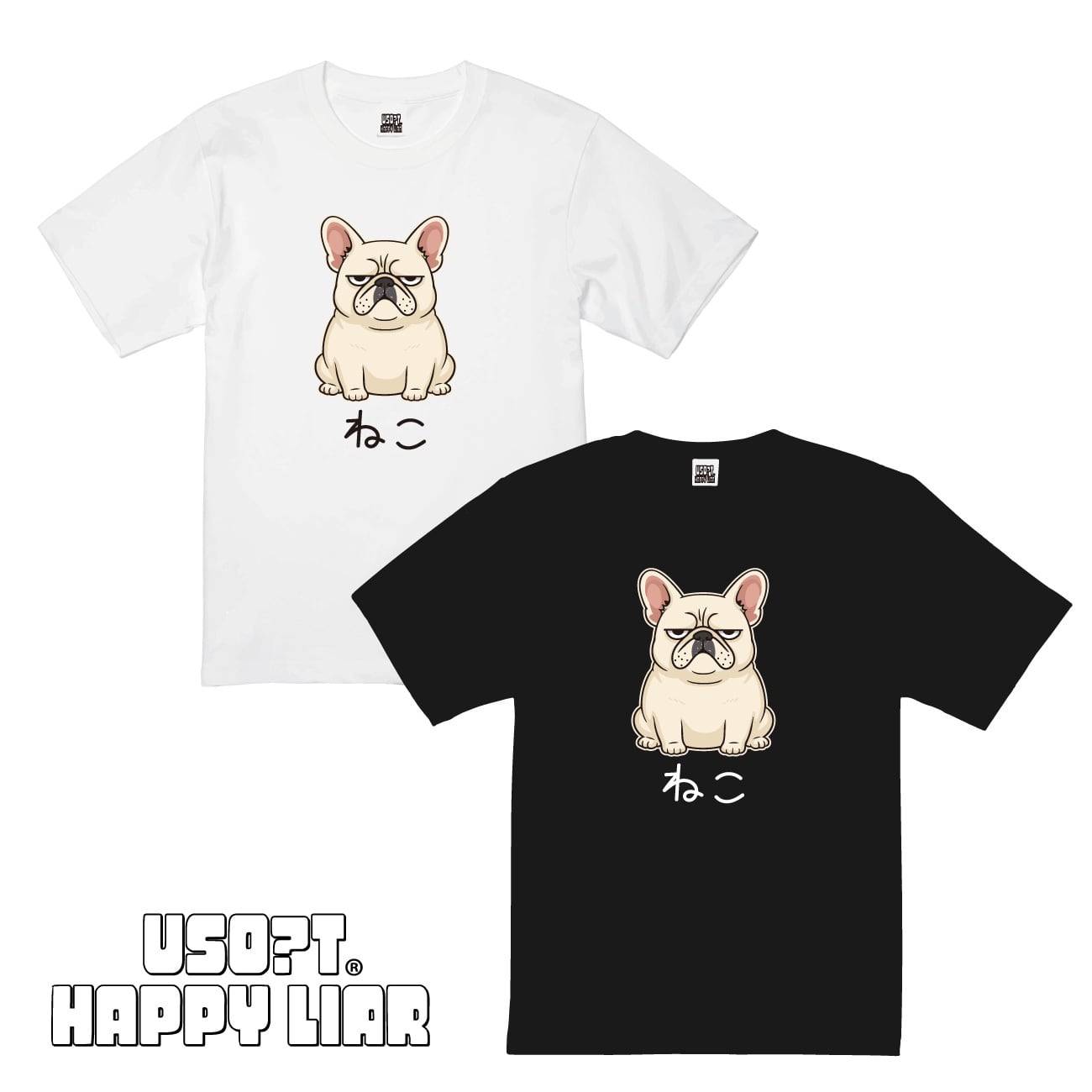 【XXL】USOT / うそT フレンチブル×ねこ(クリーム) Tシャツ