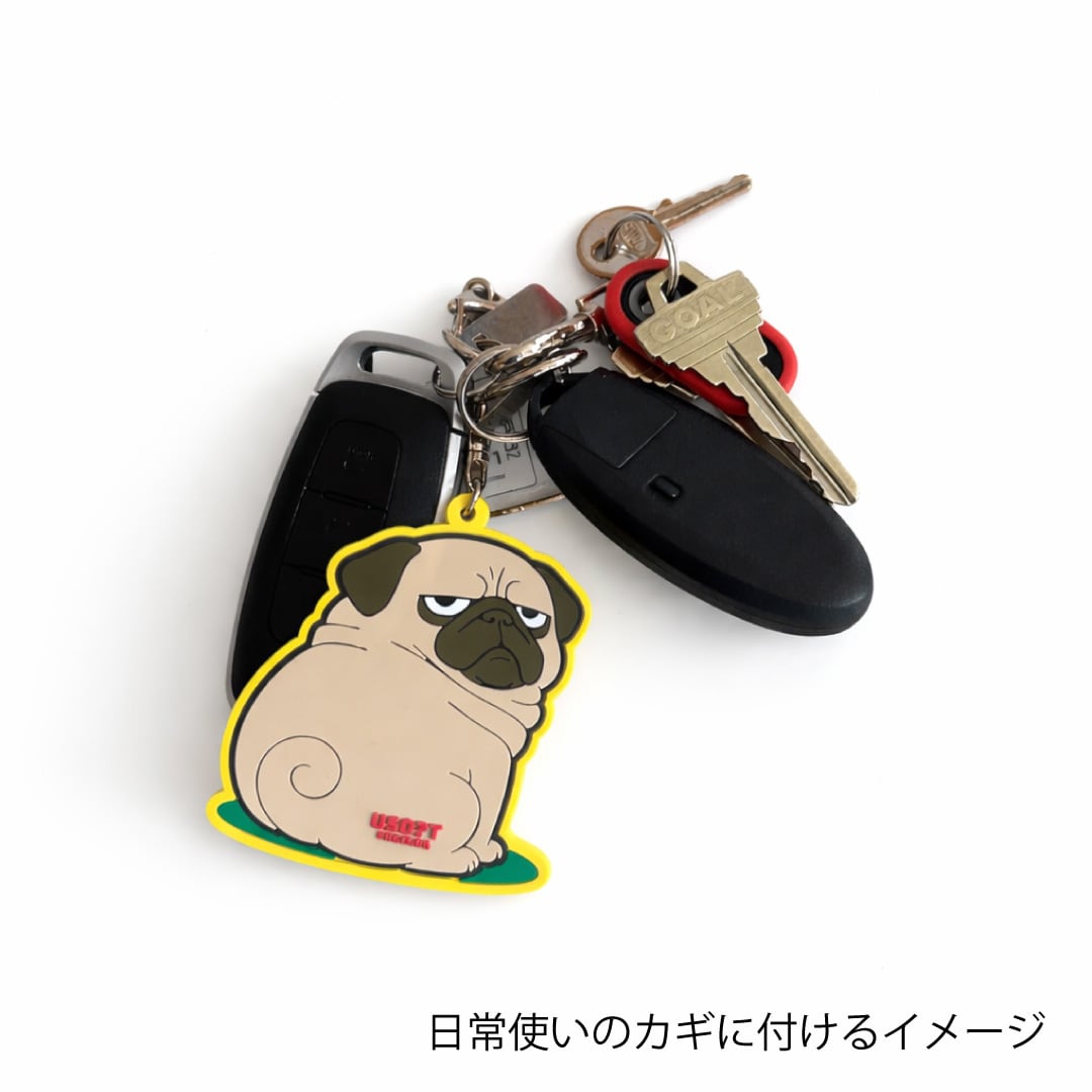 USOT / うそT 振り向きパグのラバーキーホルダー